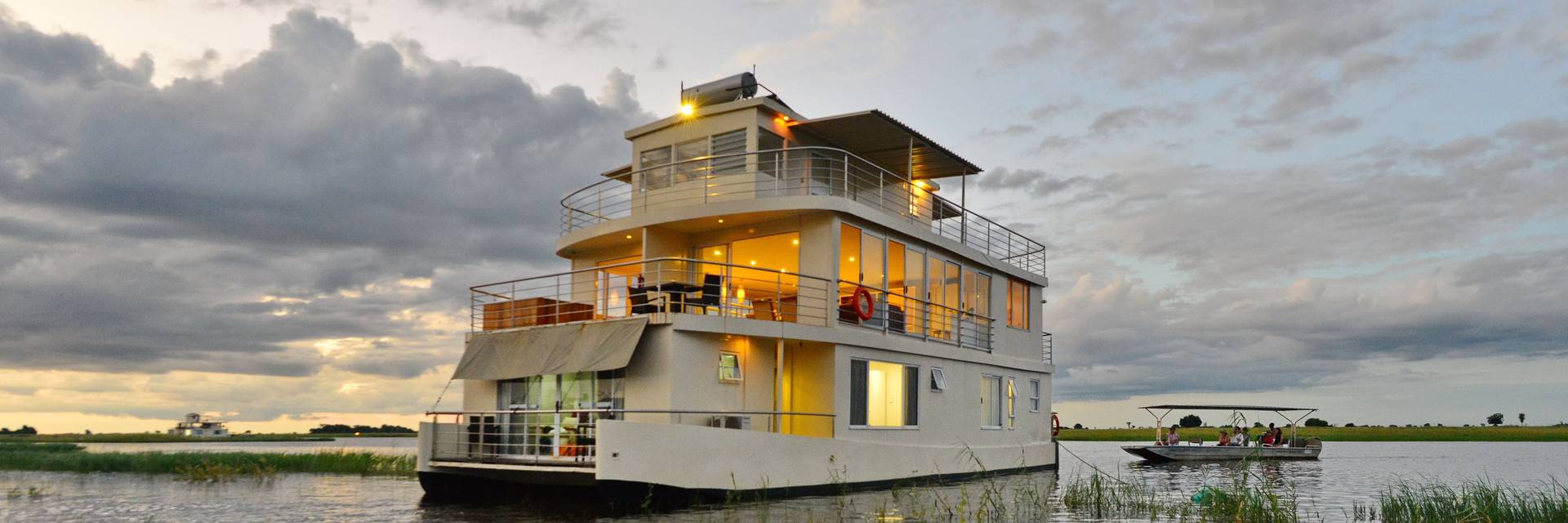 - houseboat safari Chobe River, 2 nachten € 1.100 pp (gedeelde kamer / transfers, maaltijden, dranken en boat cruises/game drive inclusief)